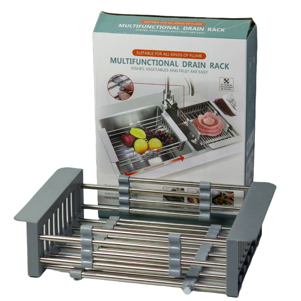 Diseño ajustable: Su estructura extensible se adapta a diferentes tamaños de fregadero, maximizando el espacio y permitiendo un escurrido eficiente de frutas, verduras y utensilios.